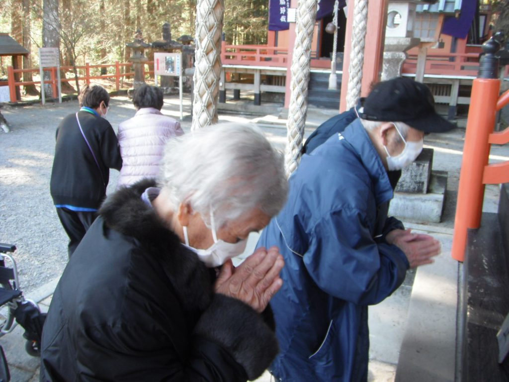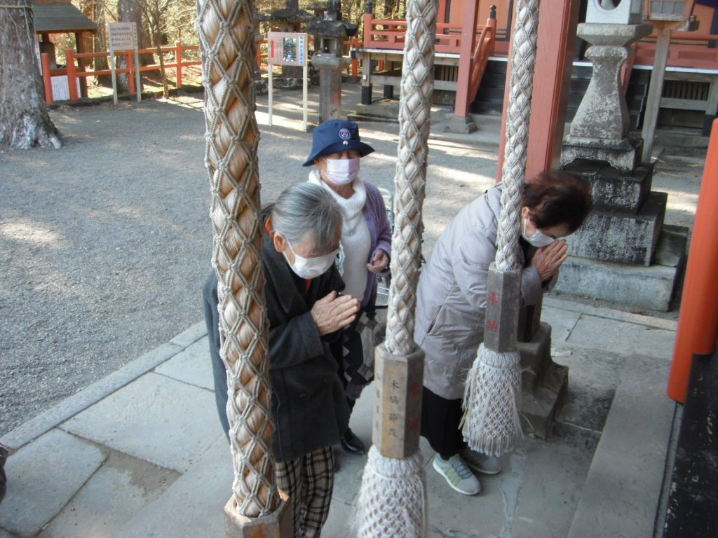 新年のごあいさつに、榎原神社へ初詣🎍 2026.01.23 ゆうゆうの森デイサービスセンター 1月上旬、ゆうゆうの森デイサービスでは榎原神社へ初詣に出かけました。 普段なかなか外出の機会が少ない方や「久しぶりに来たよ」と話される方もおられ、私たちにとっても嬉しいひとときとなりました。一人ひとりが真剣に手を合わせる姿を見て、新しい一年への願いの深さを感じました。 参拝後には、子供やお孫さんへのお守りを選ばれたり、おみくじを引かれたりする方も多く、「大吉やった」などと皆さま笑顔で喜ばれている様子が印象的でした。 これからも皆さまが安心して外出を楽しみ、笑顔になれる時間を大切にしていきたいと思います。良い一年になりますように。 ゆうゆうの森デイサービスセンター 鏡開き前の記事
