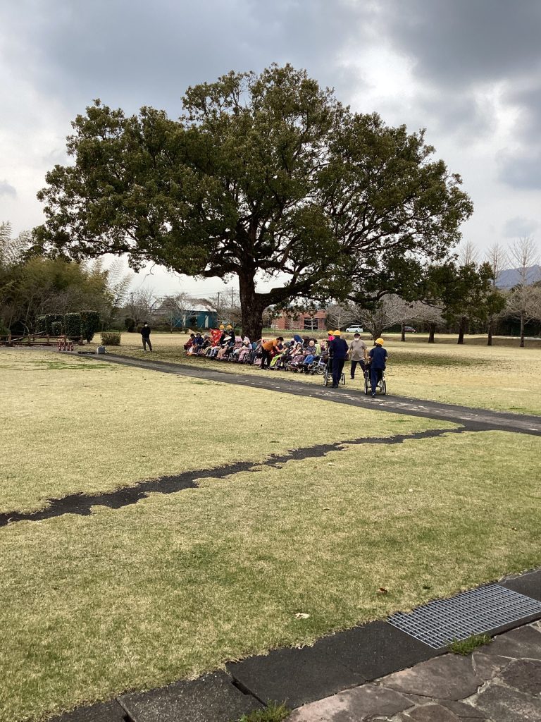 ゆうゆうの森園庭へ避難。