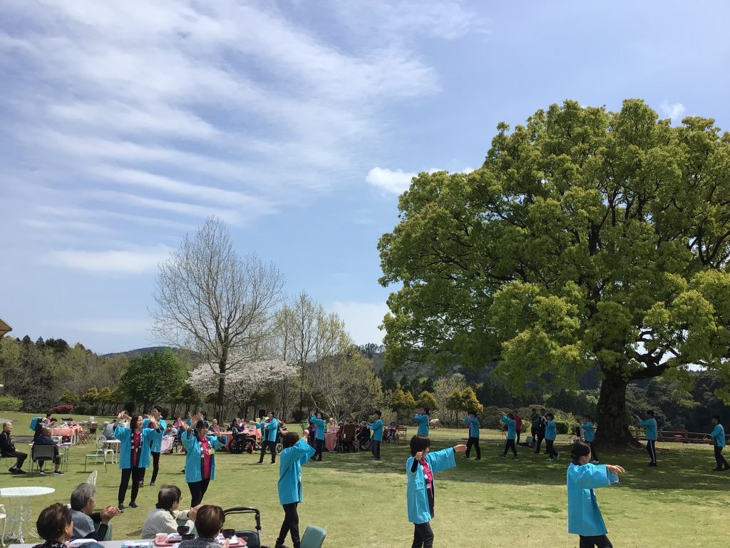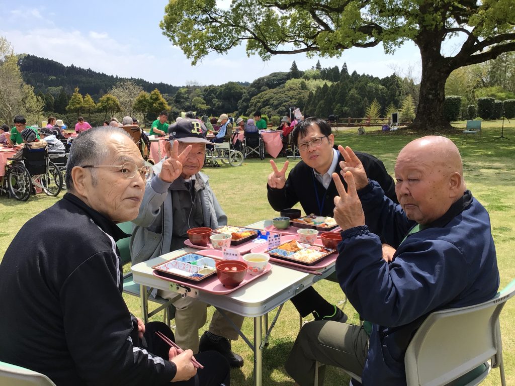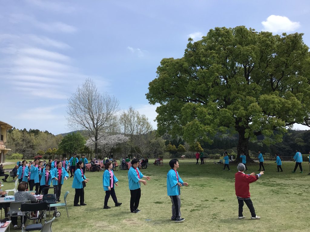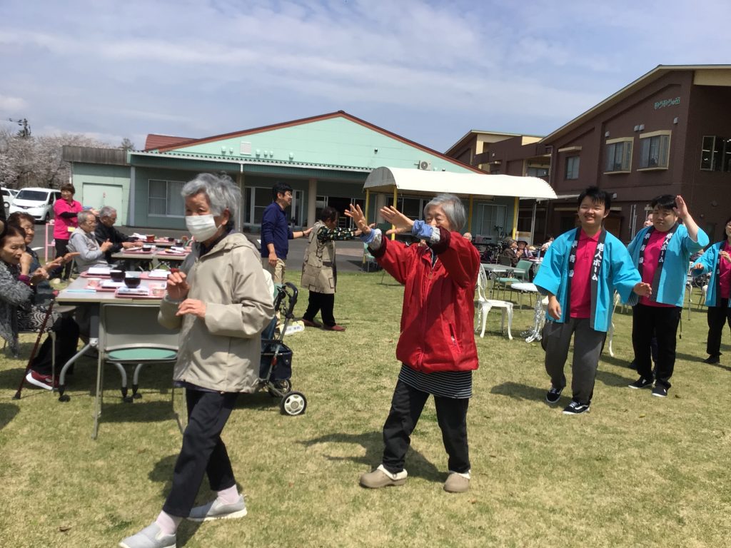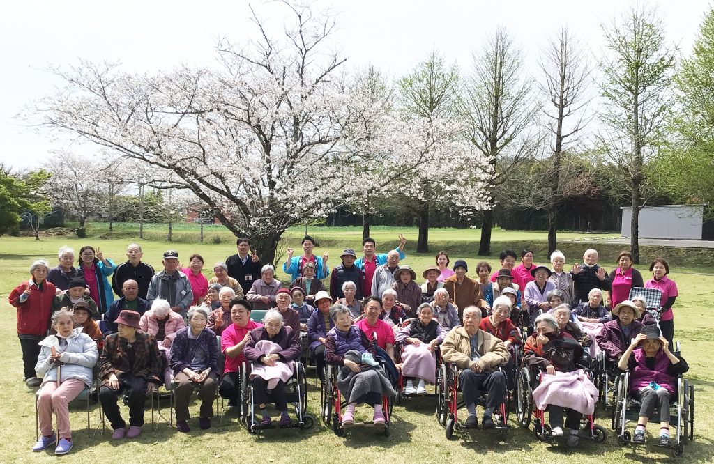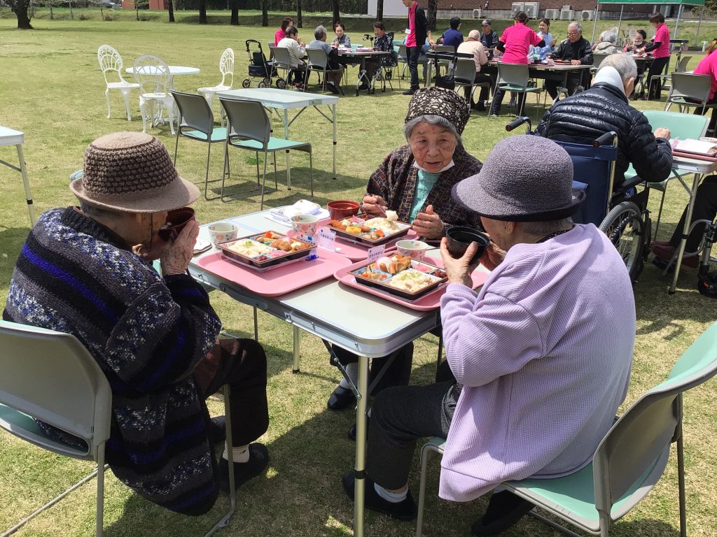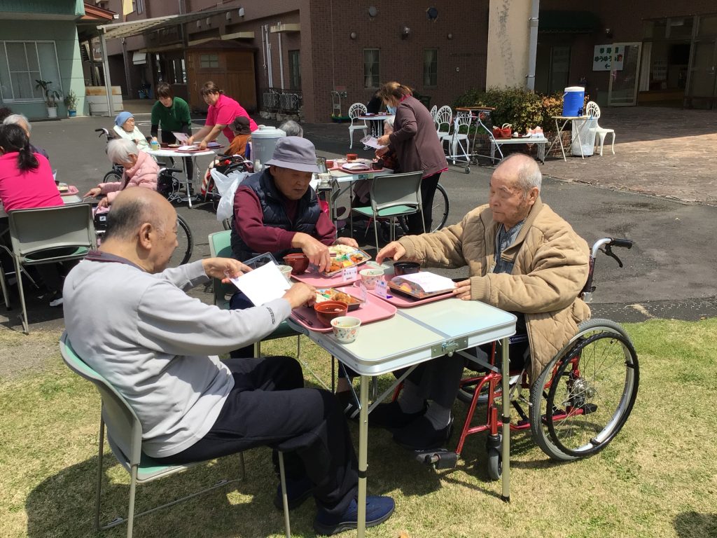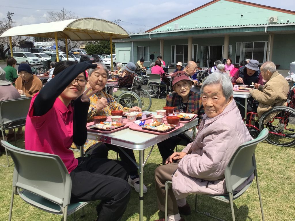 4月3日、今年度最初の行事として、施設のグラウンドでお花見食事会を行いました。 皆さんこの日を心待ちにされており、満開の桜の下でゆったりとした時間を過ごしていただきました