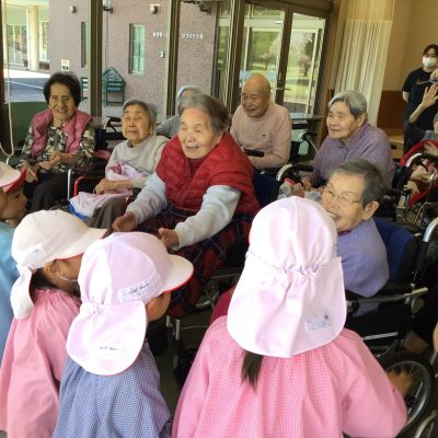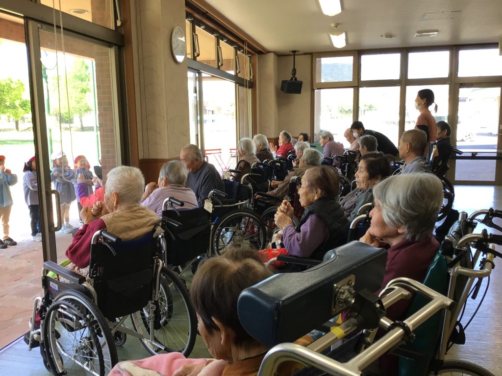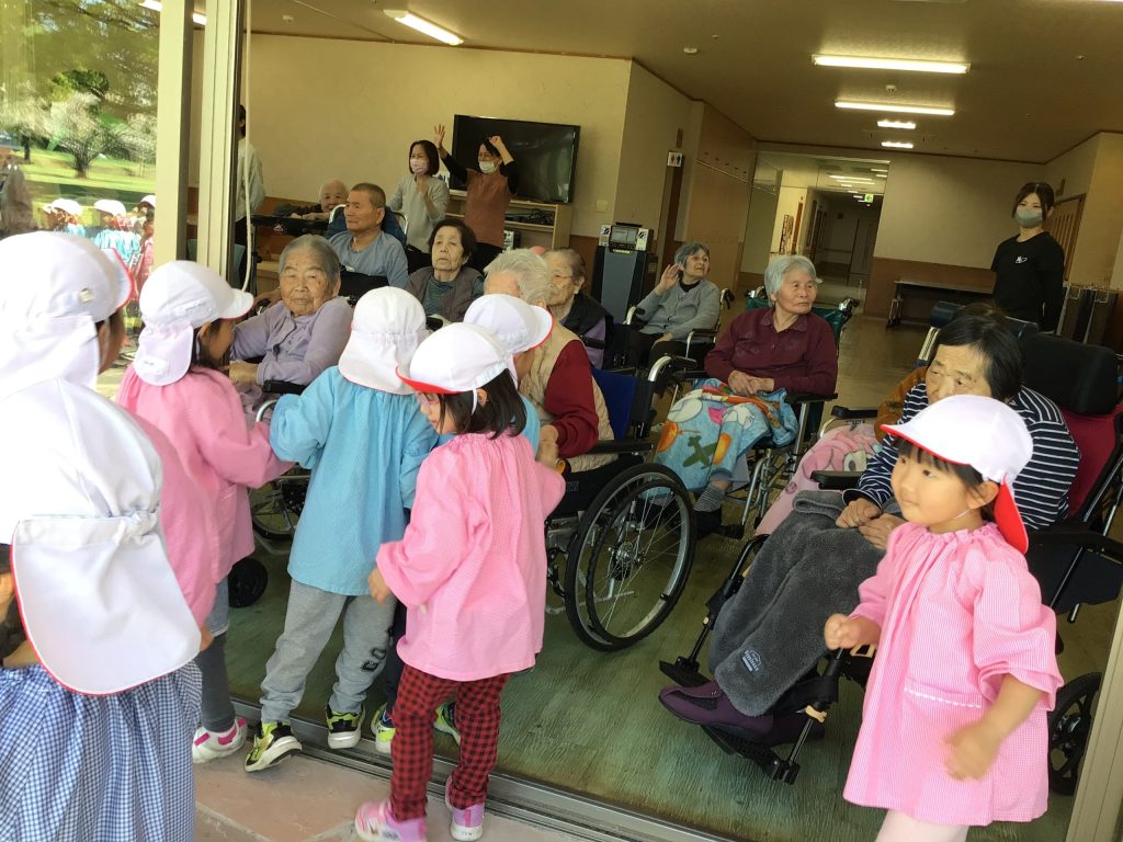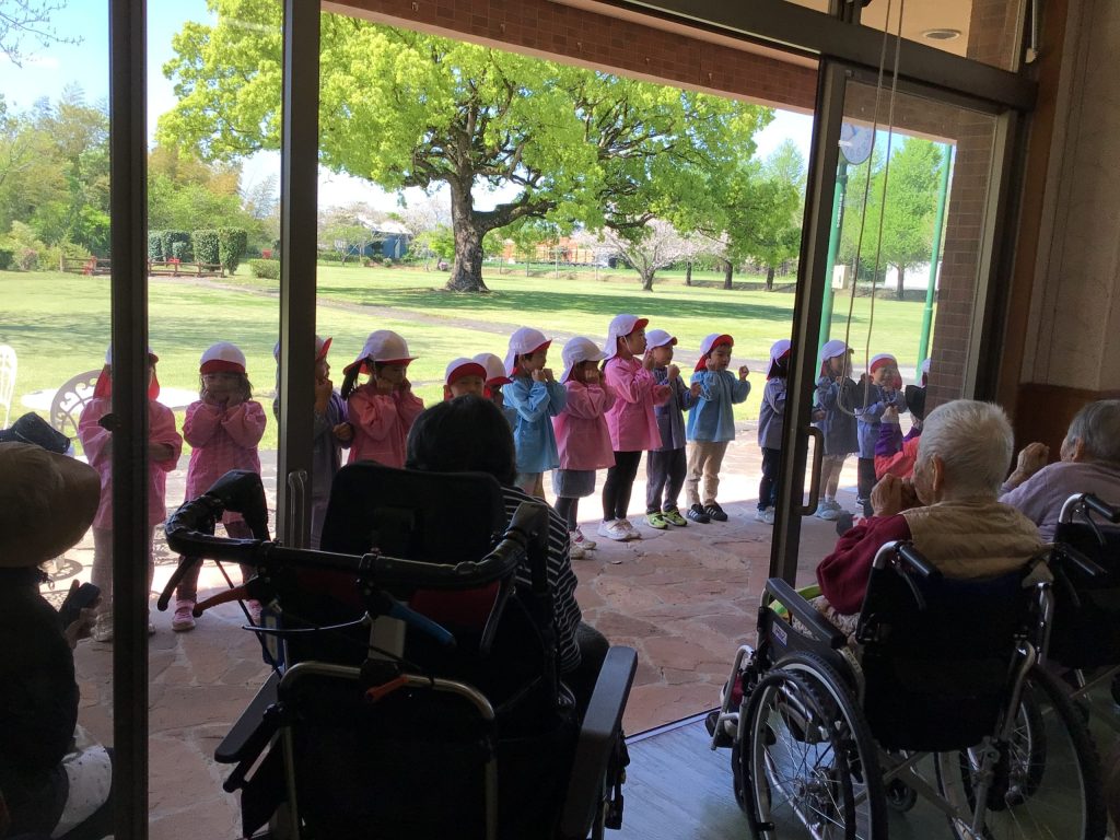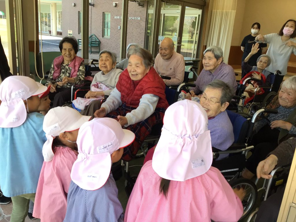 串間保育園の子供たちと交流 2026.04.8 特別養護老人ホームゆうゆうの森 4月8日、串間保育園の子供たちがゆうゆうの森の園庭に遊びに来てくれました。子供たちから歌や、踊りを披露して頂くと利用者様も笑顔で手を取って喜ばれていました。 子供たちとの交流に喜ばれ、楽しい1日となりました。 特別養護老人ホームゆうゆうの森 お花見食事会前の記事